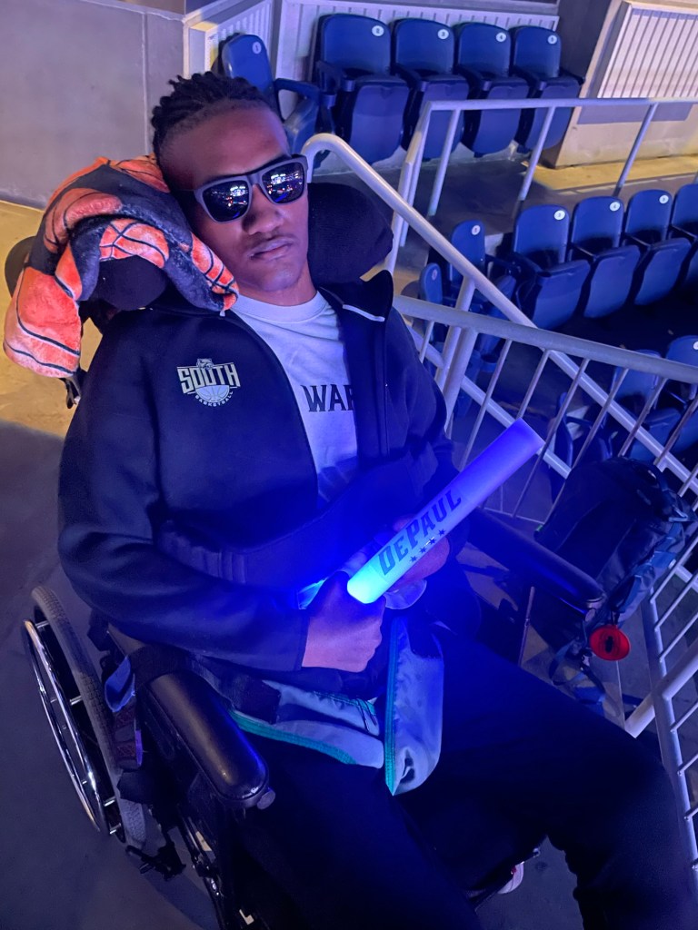 This weekend we were thrilled to be given the opportunity to take Marcus on his first non-medical outing since the incident in August. One of Marcus’ doctors here at Almost Home Kids reached out to ask whether we would be interested in taking him to a college basketball game. DePaul University and Seton Hall played for a fundraiser for Project ADAM, a national program focused on awareness and access to automated defibrillators. If you’re interested in reading more about it, the link is here: